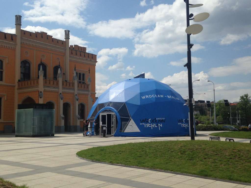 Die Installation wird in beiden Städten gleichzeitig vom 9. Mai bis 3. Juli 2016 präsentiert. Die auffällige Konstruktion der Außenhülle (ein hellblaues Kuppelzelt von 6m Höhe und 12m Breite) ist bereits von weitem sichtbar. Beim Eintreten gelangt der Besucher in die parallele Wirklichkeit des Partnerortes. Die Bildschirme, aus denen die eine Röhre formenden Wände rechts und links bestehen, zeigen in Echtzeit die Ansichten der Plätze, die die Installation der anderen Stadt umgeben. So wird der Ausblick aus der Installation vor dem Hauptbahnhof in Breslau auf die Bildschirme in der Installation am Dorothea-Schlegel-Platz nach Berlin übertragen und umgekehrt. Es entsteht der Eindruck, als wäre man in einem transparenten Raum in der jeweils anderen Stadt.