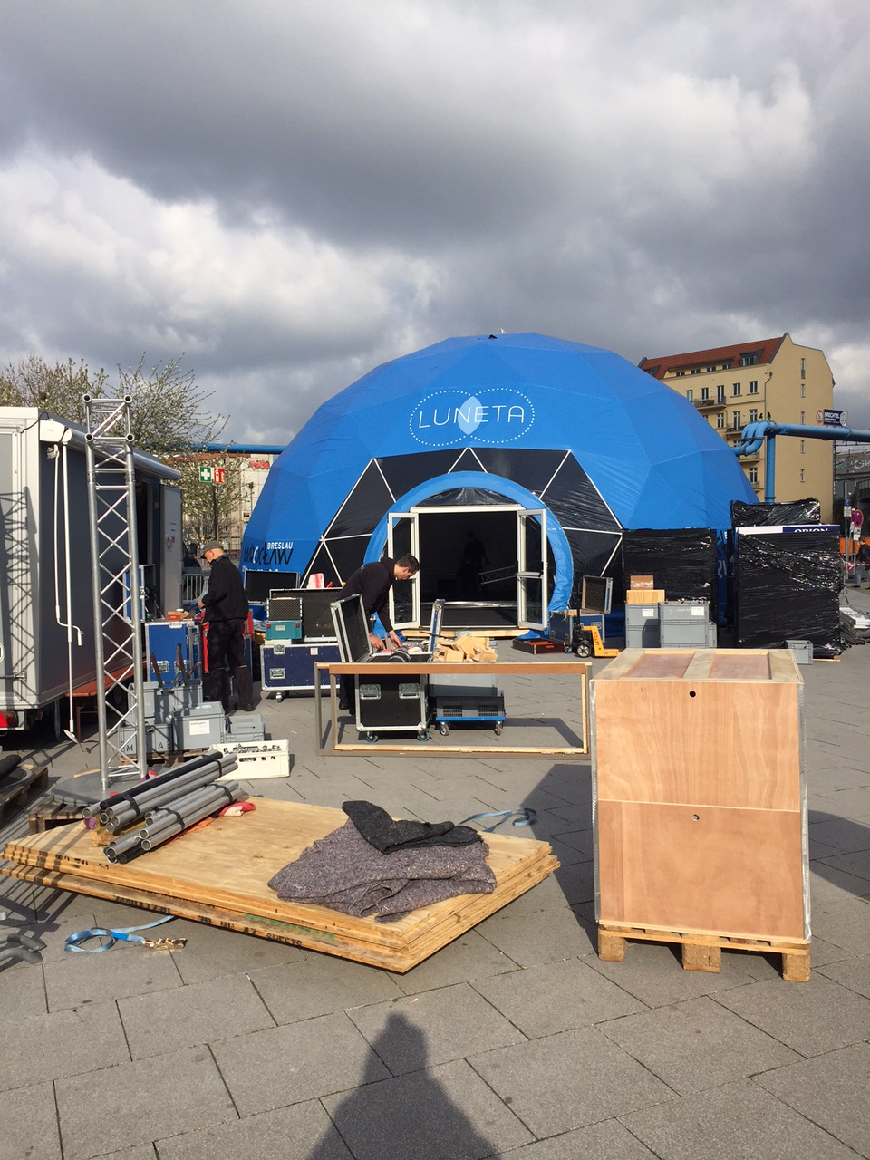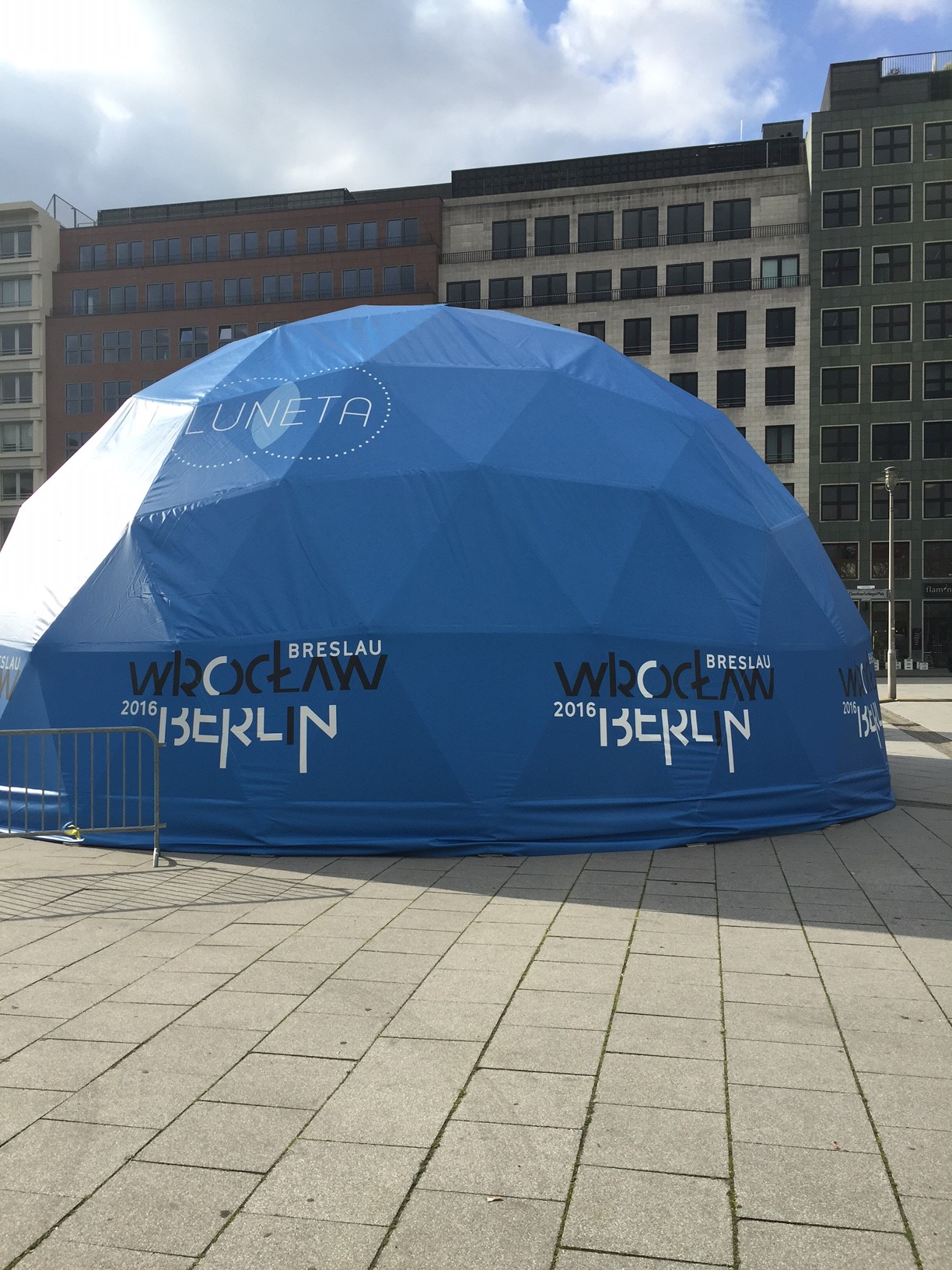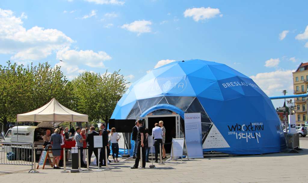 Daraus wurde LUNETA 2016, eine begehbare, multimediale Installation, die in ihrer Funktion metaphorisch von einem Fernrohr, polnisch „Luneta“, inspiriert ist. Gleichzeitig, in Breslau und Berlin, können die Besucher in Echtzeit die parallele Wirklichkeit des Partnerortes erleben, etwas über Geschichte, Gegenwart und Zukunft beider Städte erfahren und sich miteinander austauschen.